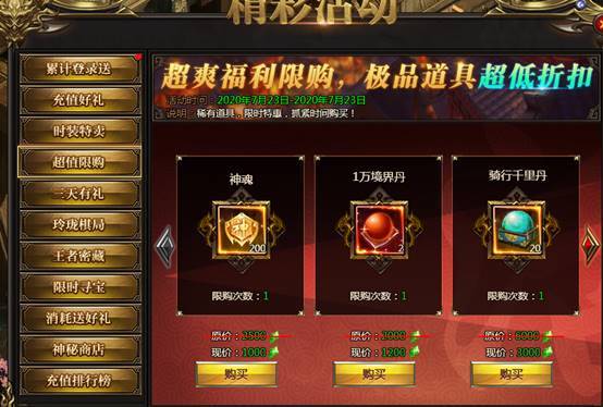 活动说明:各种稀有道具限时购买