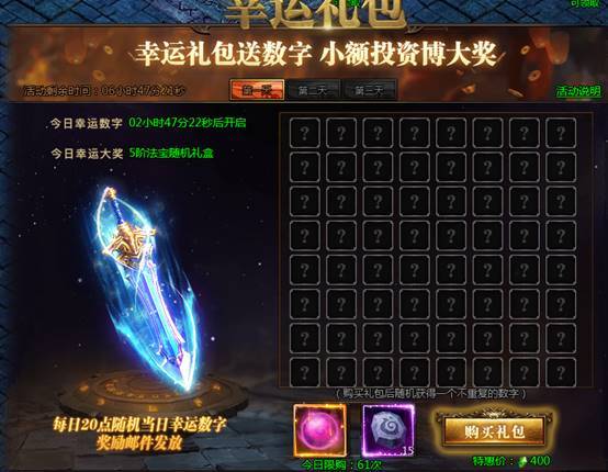 活动说明:购买礼包获得幸运数字,即可参与超级大奖