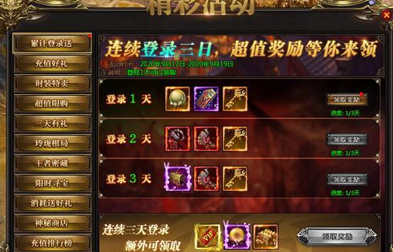 活动说明:活动期间,每天登陆即可领取奖励,连续三天更有额外奖励