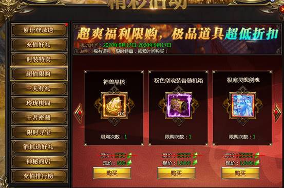 活动说明:一次购买,未来三天每日皆可领取极品奖励,助力成神