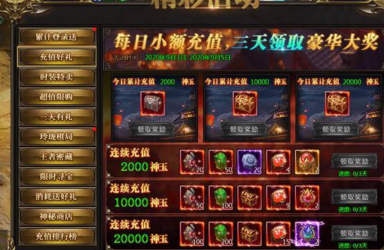 活动说:每日充值可以领取充值宝箱,连续三天充值更有额外极品奖励