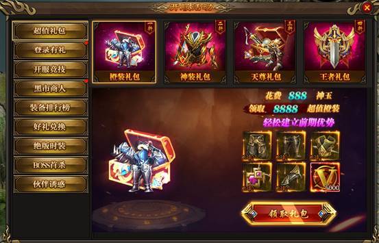 神装礼包 6888神玉 神装和稀有材料、大量神王币等