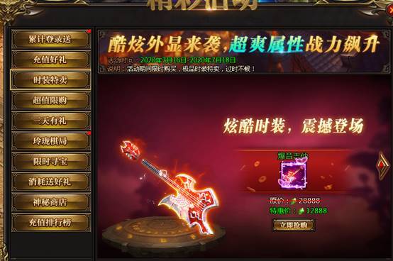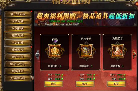 活动说明:各种稀有道具限时购买
