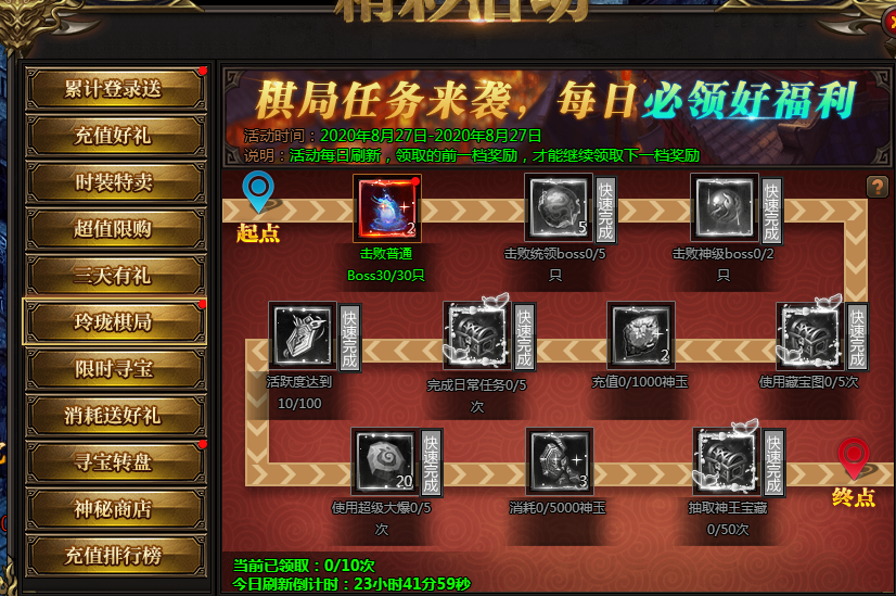 活动说明:完成日常任务,即可领取对应奖励