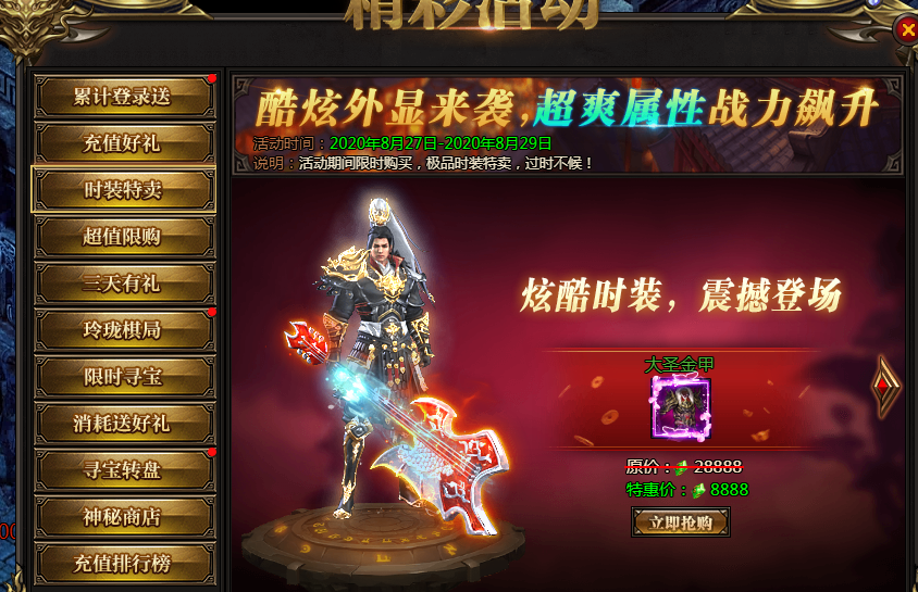 活动说明:各种稀有道具限时购买
