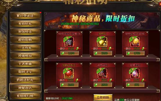 活动说明:神秘商店限时来袭,超低折扣,限时购买。同时可以通过刷新按钮,花费200神玉进行刷新