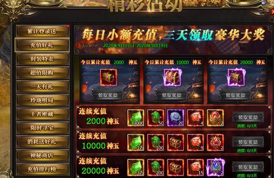 活动说:每日充值可以领取充值宝箱,连续三天充值更有额外极品奖励