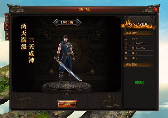 等级到达了1000级限制?快快点开成神界面,前往成神界面,成神为自己提升百分比属性加成,并且可以进入更强大的Boss地图,让自己的实力更上一层楼!