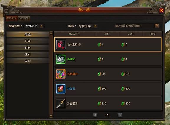 开启之后可以销售自己不需要的装备及材料,也可以购买别人销售的装备及材料