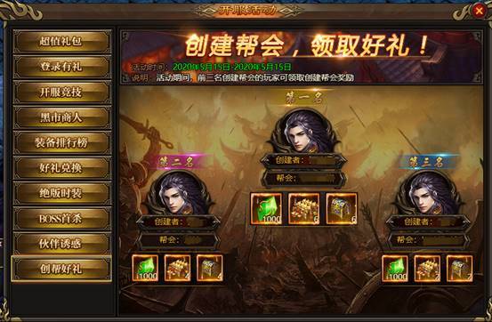 开服第一天,前三名创建帮会的玩家可以领取奖励